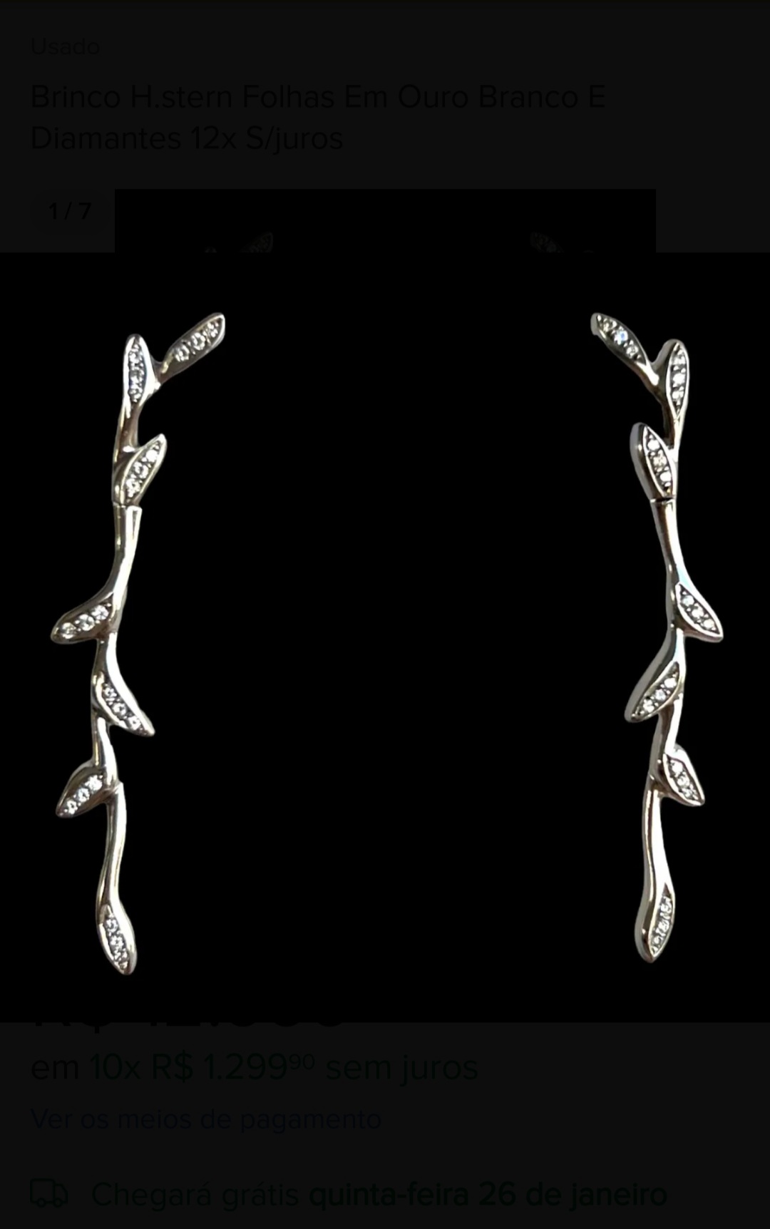 Brinco H.stern Folhas Em Ouro Branco E Diamantes 12x S/juros