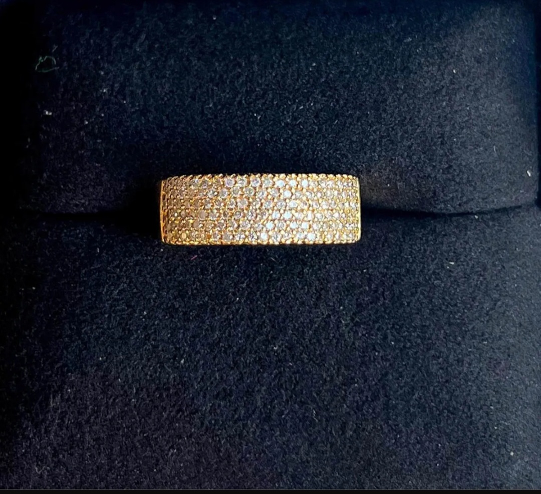 Anel Pavê De Diamantes Largo Em Ouro Amarelo 12x Sem Juros!!!