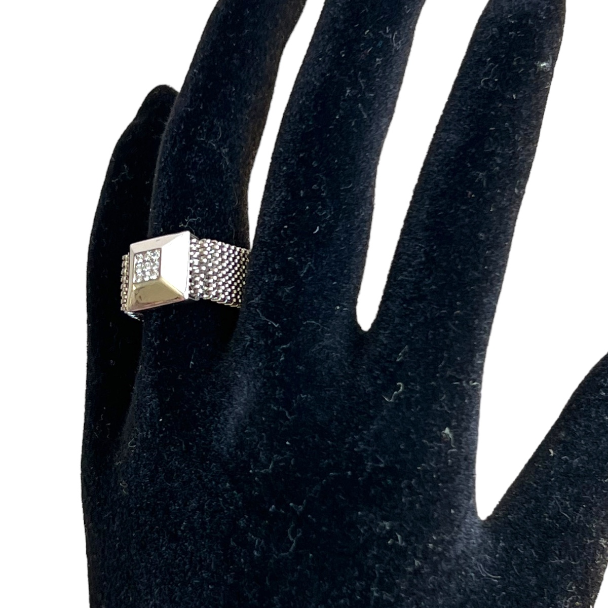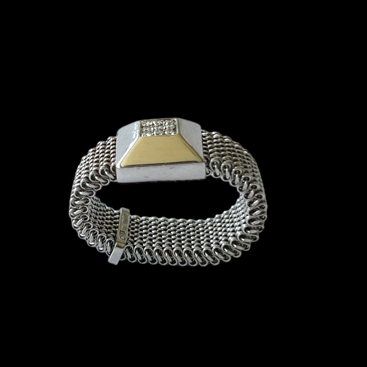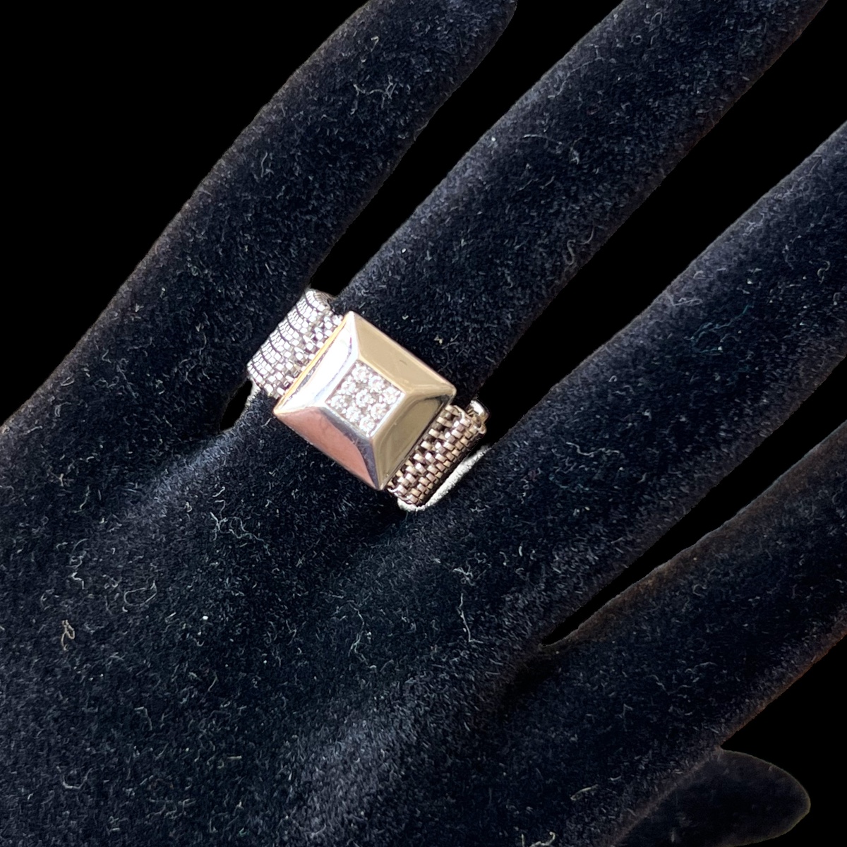 Anel em Ouro Branco Italiano com 9 Brilhantes