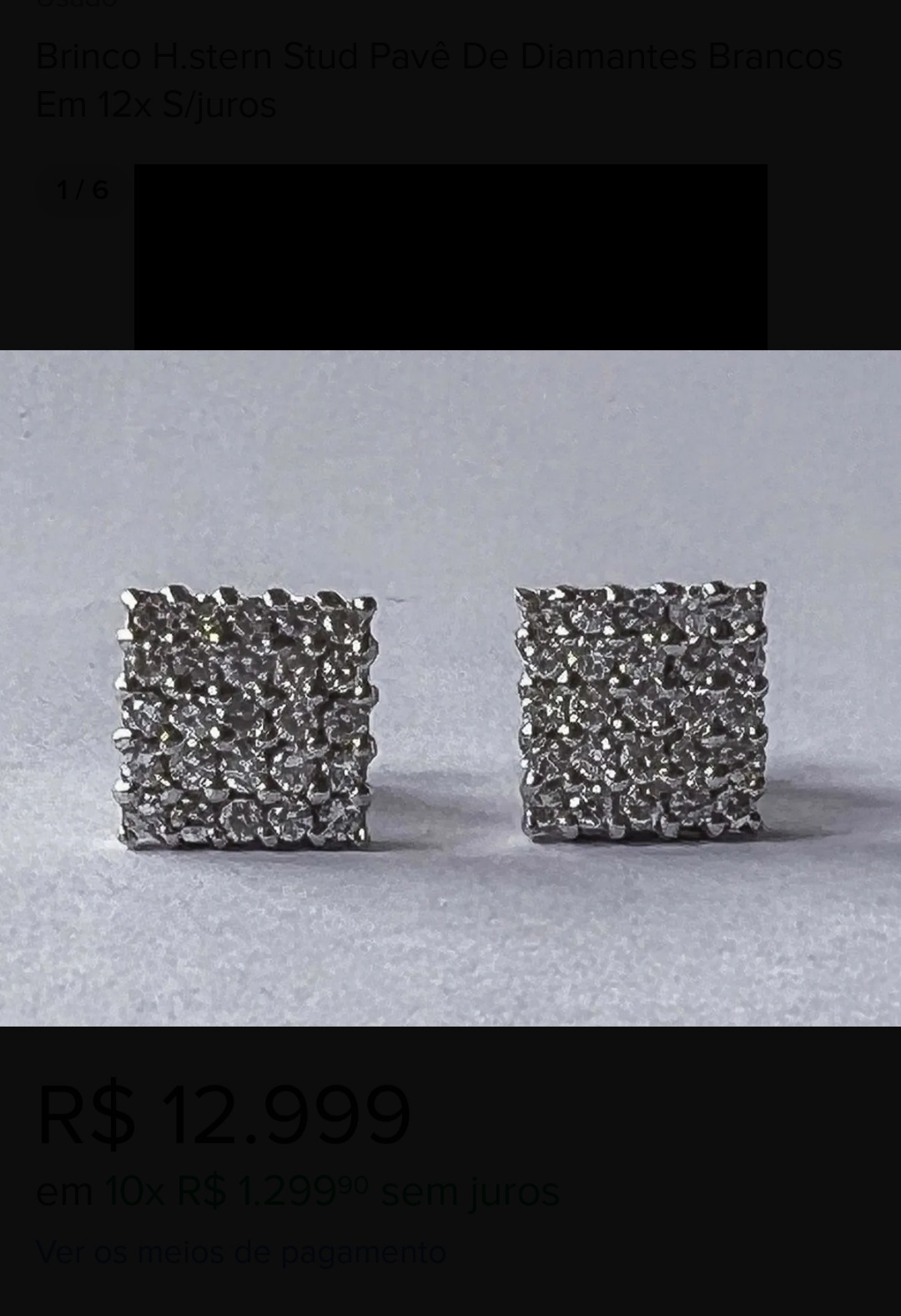 • Brinco H.stern Stud Pavê De Diamantes Brancos Em 12x S/juros R$12,999.00