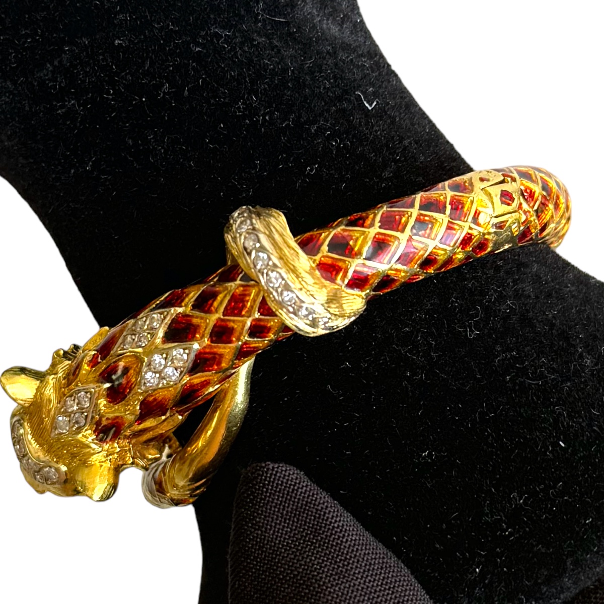 Bracelete Tigre em Ouro , Brilhantes , Rubi & Esmalte! Uma Raridade da década de 50!