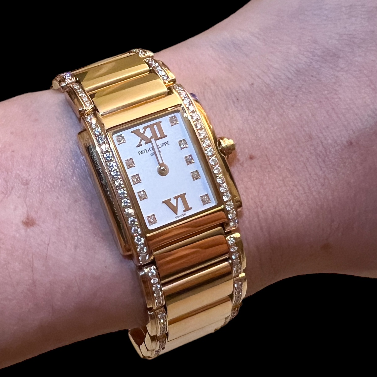239 diamantes originais de fábrica no relógio.
