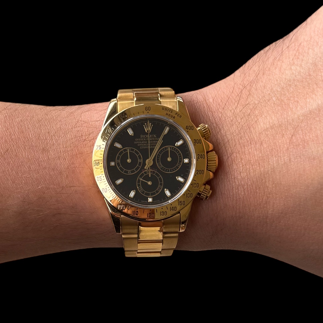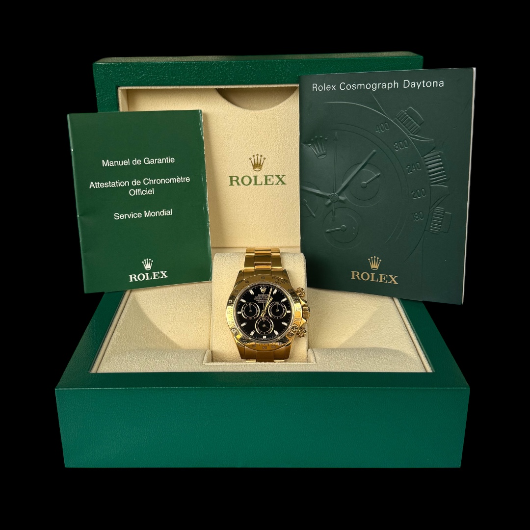 Rolex Daytona em Ouro Amarelo, Mostrador Preto e impecável