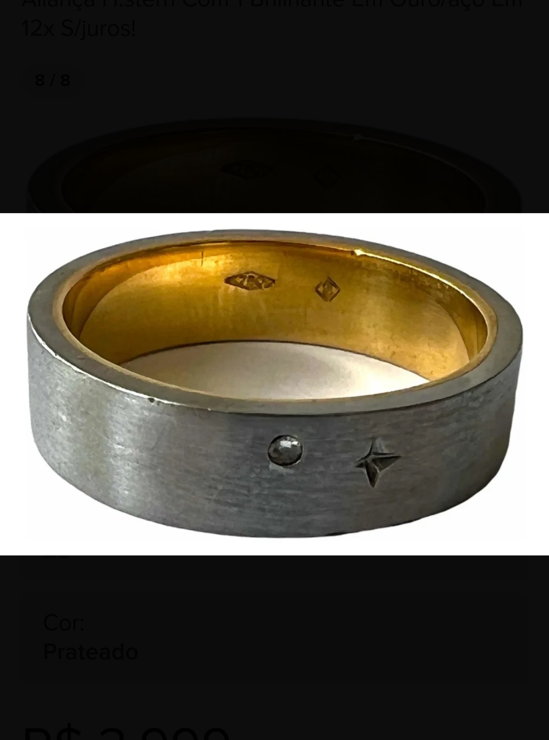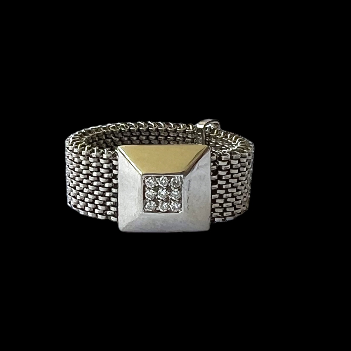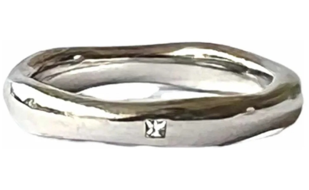Anel em Ouro Branco Maleável e Flexível com 9 brilhantes , Unissex em 12x sem juros!
