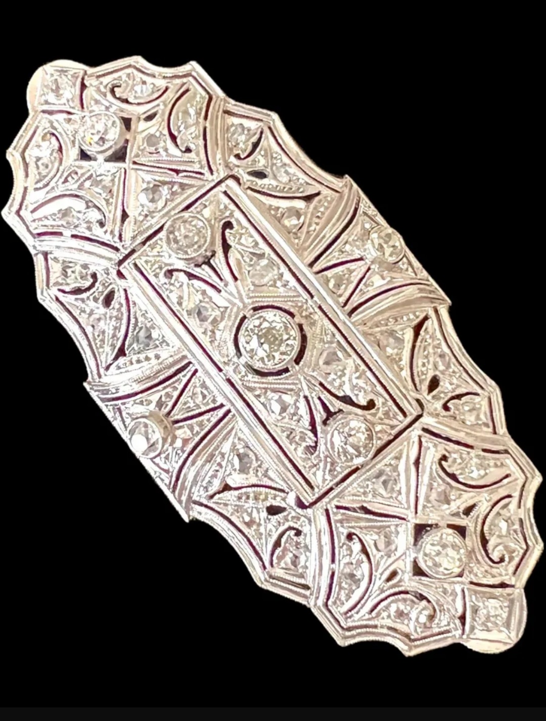 Broche Em Platina Com Diamantes Art Deco Em Até 12x S/juros!